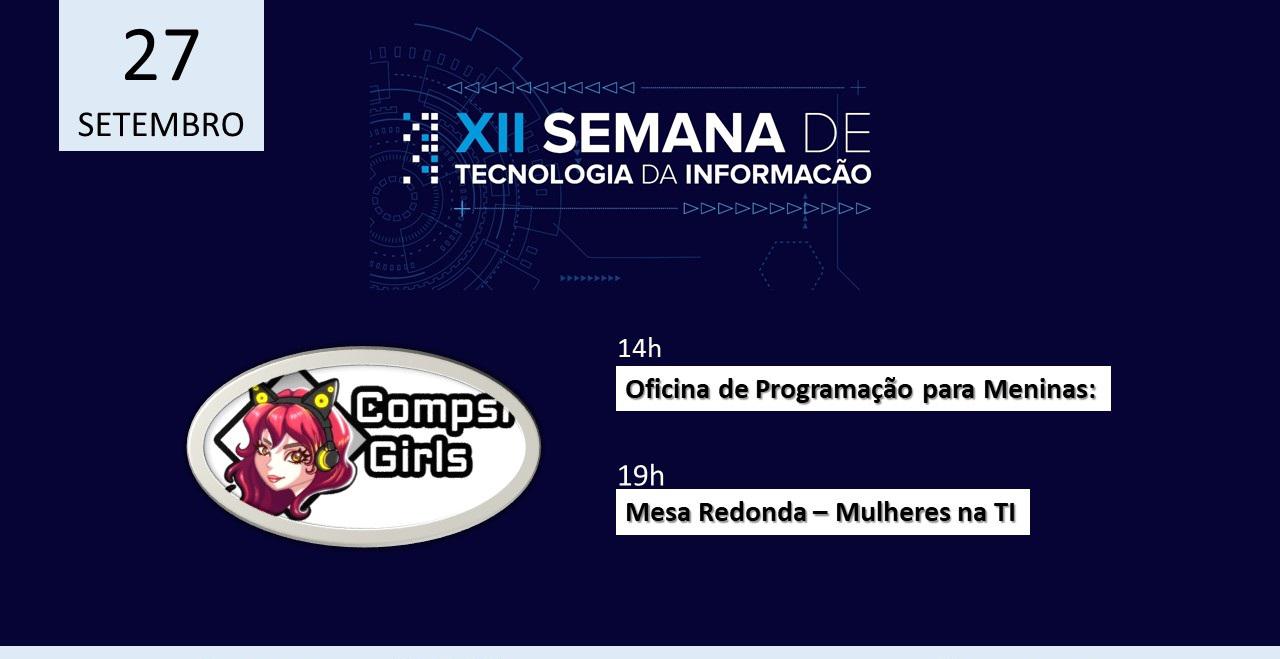 - Durante o período noturno, como parte da Semana de TI, serão ministrados minicursos de desenvolvimento de jogos.