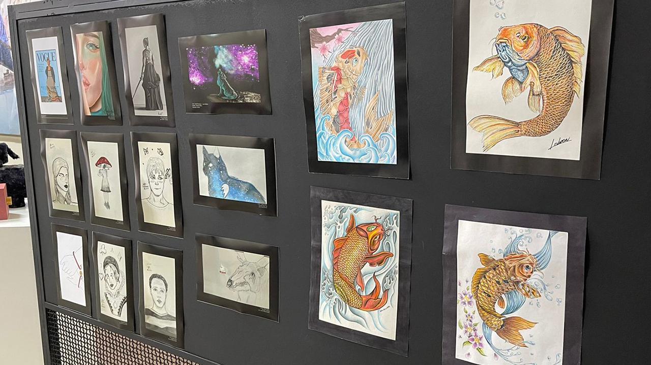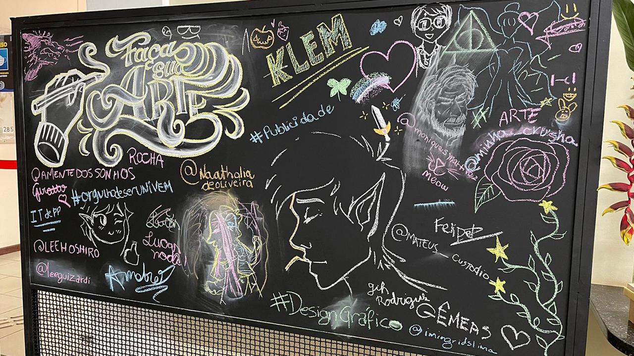 Quadro disponível para interação dos alunos com os visitantes da exposição para desenhos e ilustrações