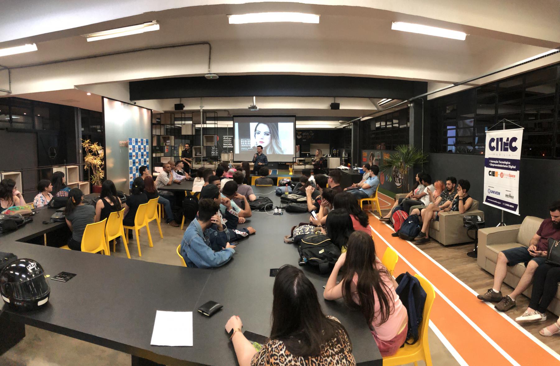 Com o objetivo de inspirar os futuros profissionais e de reafirmar a qualidade dos alunos que saem do Centro Universitário, o UNIVEM promoveu, no InovvaSpace Coworking, a palestra “Design aplicado aos negócios e inovação”, com a UI Designer (Design de Interface do Usuário) e ex-aluna do curso de Design Gráfico, Rebeca Souza.