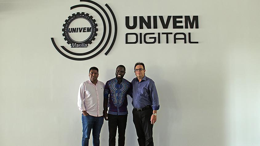 O UNIVEM recebeu, na última semana, a visita do aluno do curso de Direito da Universidade Lomé, primeira universidade pública de Togo, na África, Maurice Kaumako. Acompanhado do coordenador do Curso de Direito do UNIVEM, Prof. Dr. Edinilson Donisete Machado e do aluno Levi Pereira de Oliveira, Maurice conheceu a infraestrutura e todo o ambiente de inovação e empreendedorismo do Centro Universitário.