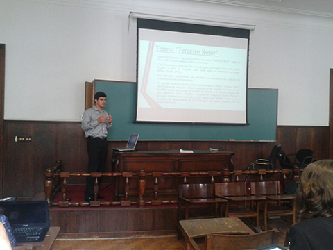 Aluno do 4º termo do curso de Direito do UNIVEM, Eric Smaniotto, apresentou a pesquisa História e Legalidade no terceiro setor. “A pesquisa não é somente escrever artigos, ou buscar identificar os problemas na sociedade, é você modificar a sociedade. Na pesquisa você é um agente social que pode transformar o meio onde você coexiste”, frisou.
