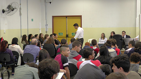 Cerca de 120 alunos do Ensino Médio e Técnico da Etec Antônio Devisate participaram do Juri Simulado do Univem, presidido pelo professor de Direito Roberto da Freiria. Durante quase duas horas eles puderam acompanhar o funcionamento de um tribunal do juri.