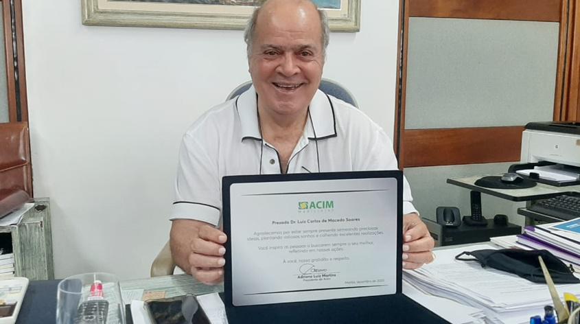 Na reunião da Diretoria da Associação Comercial de Marília (ACIM), realizada hoje pela manhã, na sede do Sicredi, o presidente da mantenedora da Fundação de Ensino Eurípides Soares da Rocha e Reitor do Centro Universitário Eurípides de Marília - UNIVEM, Dr. Luiz Carlos de Macedo Soares recebeu uma homenagem como reconhecimento pelo belíssimo trabalho conduzido na área do empreendedorismo, inovação e tecnologia. A homenagem foi entregue diretamente pelo Presidente Adriano Martins.